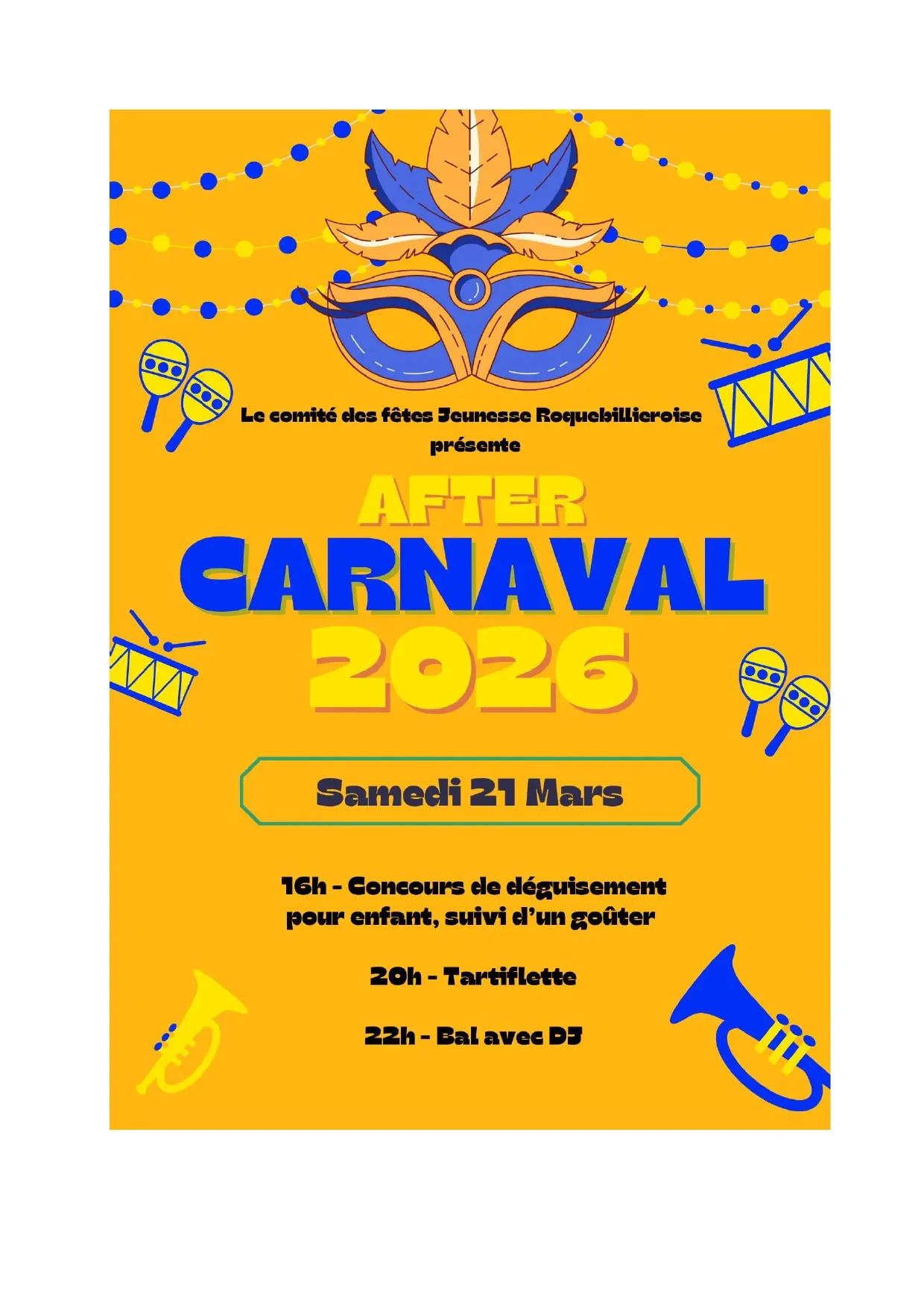 Giornata di festa dalle 16:00 sulla piazza del villaggio, organizzata dal comitato del festival Jeunesse roquebilièroise.