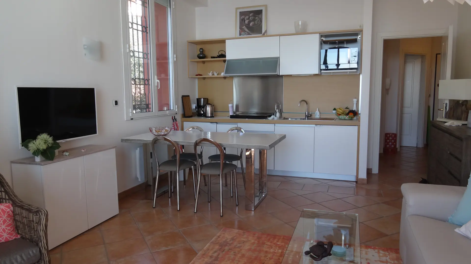 Residenza di alto livello con piscina e parcheggio privato chiuso. 5 minuti a piedi dal centro storico, dai negozi e dai ristoranti. A 8 minuti dalla spiaggia e dalla stazione ferroviaria. (Vietato fumare) Appartamento con vista panoramica sulla baia di Villefranche e St-Jean Cap Ferrat. Attrezzature di qualità, scelte con cura, decorazione raffinata. Ingresso con armadio, bagno con vasca e asciugamani, zona lavanderia; camera da letto spaziosa, biancheria da letto di alta gamma da 160 cm, grande comfort; soggiorno con cucina a vista completamente attrezzata; soggiorno con divano in pelle leggera trasformabile, materasso in lattice da 140 cm per il riposo quotidiano + grande pouf in pelle, attrezzatura completa con TV, lettore DVD, Hifi, accesso Wifi, giochi, libri vari. Aria condizionata nella stanza principale. Terrazza con balcone di 7 m² che si affaccia sulla baia di Villefranche con una vista eccezionale e panoramica. Piscina del residence con vista panoramica sulla baia, in un contesto di villa privata e vegetazione mediterranea, su uno sfondo roccioso! Eccellente monitoraggio della qualità dell'acqua.