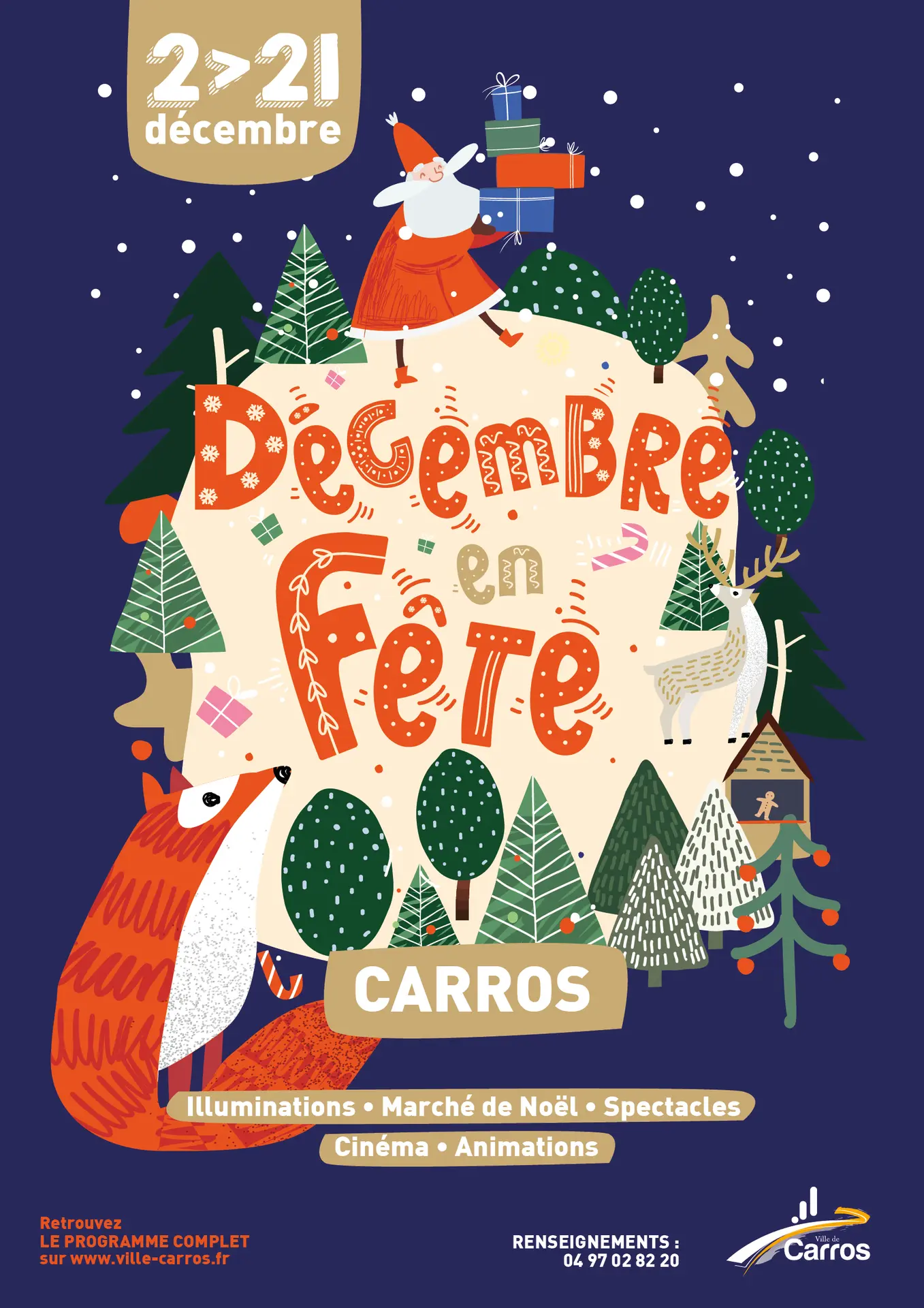 Durante il mese di dicembre, la città di Carros vi offrirà numerose attività: illuminazioni, mercatino di Natale, spettacoli, cinema, ecc.