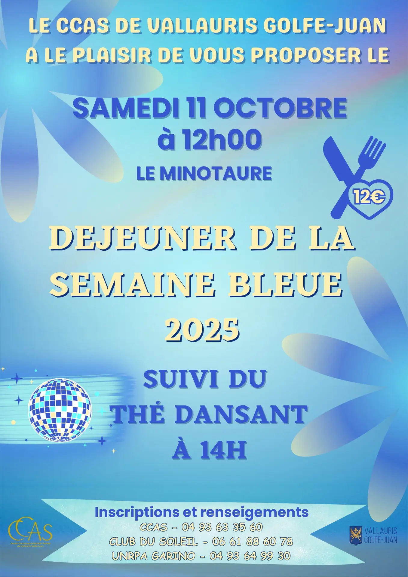 Il CCAS di Vallauris Golfe-Juan è lieto di invitarvi a condividere un momento conviviale durante il Pranzo della Settimana Blu, seguito da un Té danzante animato e caloroso.