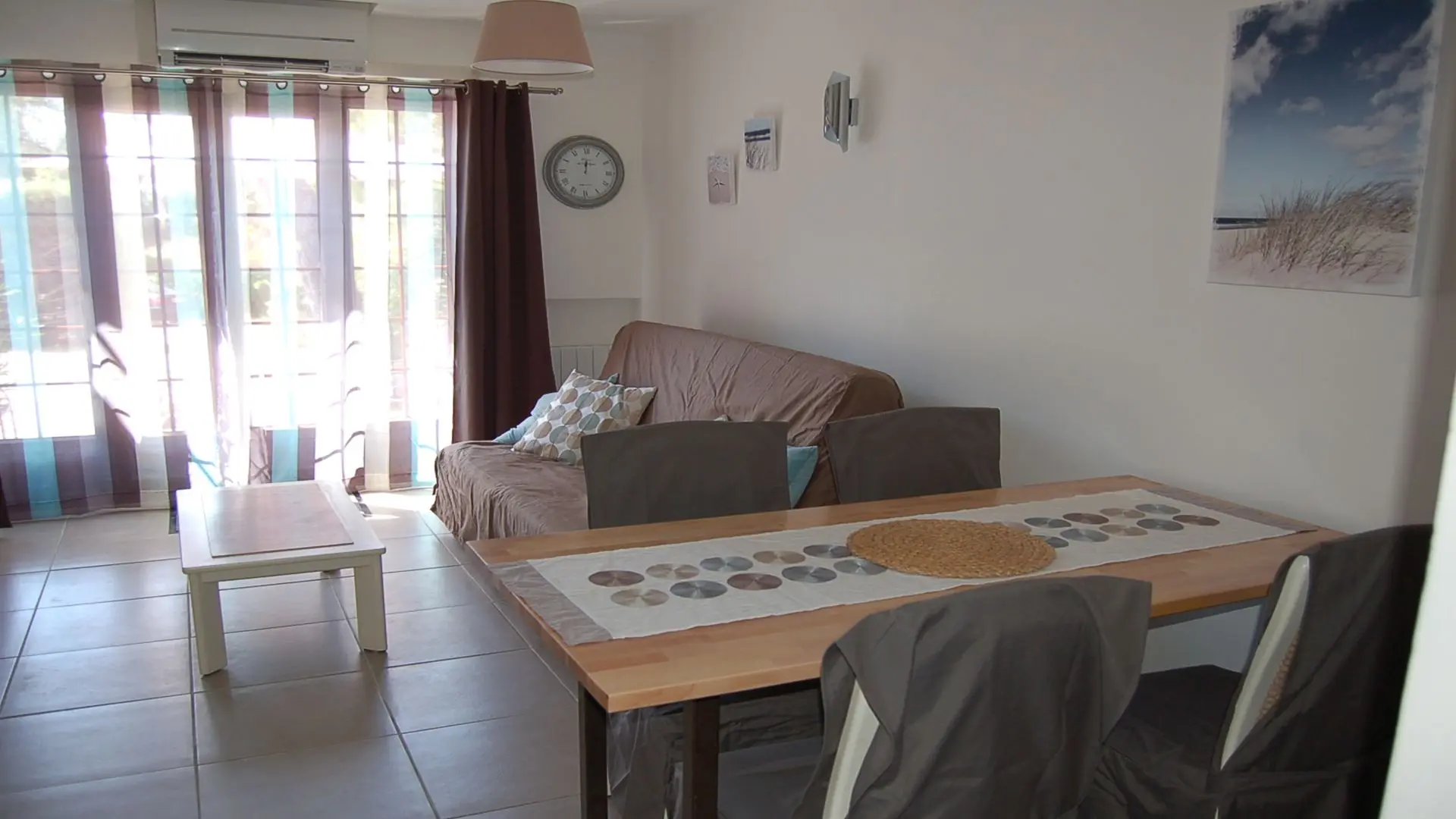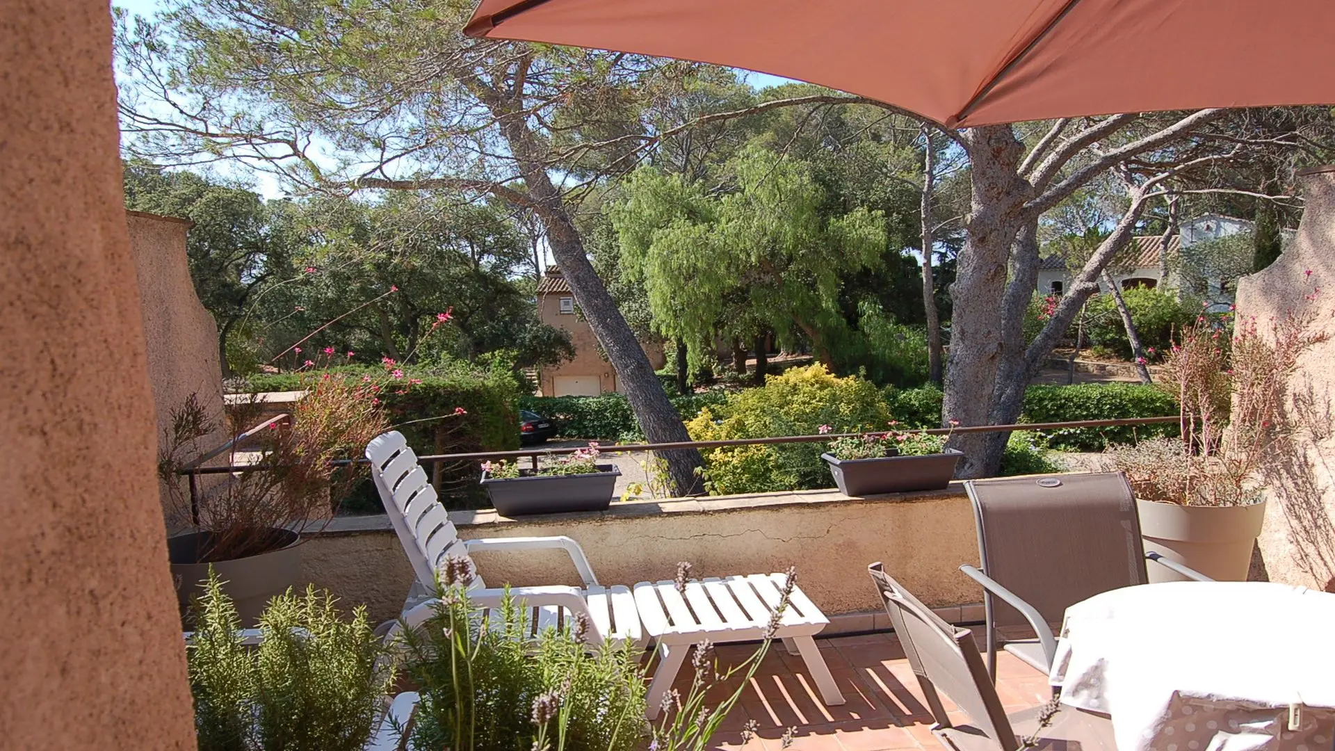 Appartamento di tipo F2 Duplex al piano terra, per 4 persone. vicino alla spiaggia La Peguière, con 2 bagni + 2 sanitari e 2 terrazze di 9 e 15 m ², Aria condizionata/riscaldamento, Wi-Fi, affitto tutto l'anno.