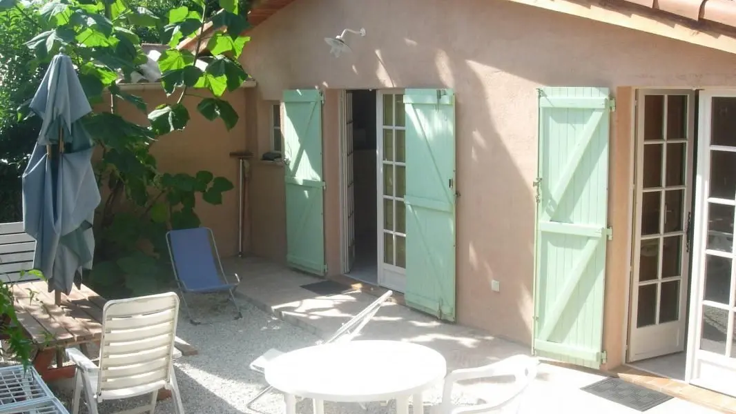 Gîte al piano terra -60 m2 con giardino recintato -30 m2. Ingresso/soggiorno con 1 divano letto per 2 persone. Cucina aperta completamente attrezzata (piano cottura a gas, forno, frigorifero e freezer, stoviglie e kit di cucina).
