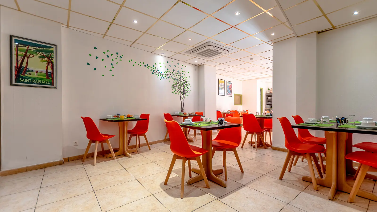 Le 27 camere disposte su 3 piani, tutte non fumatori, dispongono di climatizzazione, insonorizzazione (doppi vetri) e sono dotate di TV a schermo piatto, cassetta di sicurezza, letto con piumino (su richesta, letto matrimoniale o 2 letti separati), bagno con doccia o vasca - asciugacapelli. Alcune di esse possono ospitare 3 o 4 persone. Dei lettini per bambini sono disponibili su richiesta e secondo la disponibilità. Accesso a Internet Wifi gratuito in tutto l'hotel. La colazione a buffet è servita dalle 7.30 alle 10.00 con bevande calde, succhi di frutta, pane, dolci, cereali, yogurt, formaggi e salumi... Un parcheggio pubblico è situato a 100 metri dall'hotel. Sono ammessi cani di piccola taglia.