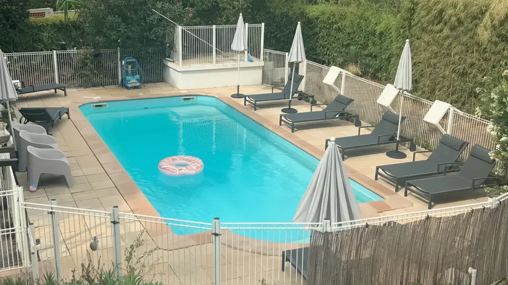 L'hotel si trova a Saint-Raphaël, in una tranquilla zona residenziale nel mezzo di un parco di quasi 3000 m2 piantumato con alberi secolari e vegetazione mediterranea. La sua posizione privilegiata, a 15 minuti a piedi dal mare, permette soggiorni tranquilli beneficiando dell'animazione del mare.La sua piscina attrezzata con sdraio e ombrelloni permette di rinfrescarsi d'estate sfruttando appieno il sole.