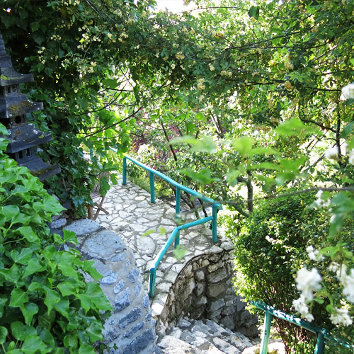 Il giardino d'artista è organizzato a terrazze, con aree compartimentate che si alternano a punti di vista sul paesaggio. Il giardino d'artista incorpora anche diverse opere d'arte ed è arricchito da padiglioni, camminamenti e scale in legno, accuratamente progettati dal proprietario in armonia con gli alberi e le piante. Offre una variegata tavolozza di piante e un luogo dove accogliere nuove collezioni che si arricchiscono nel tempo.