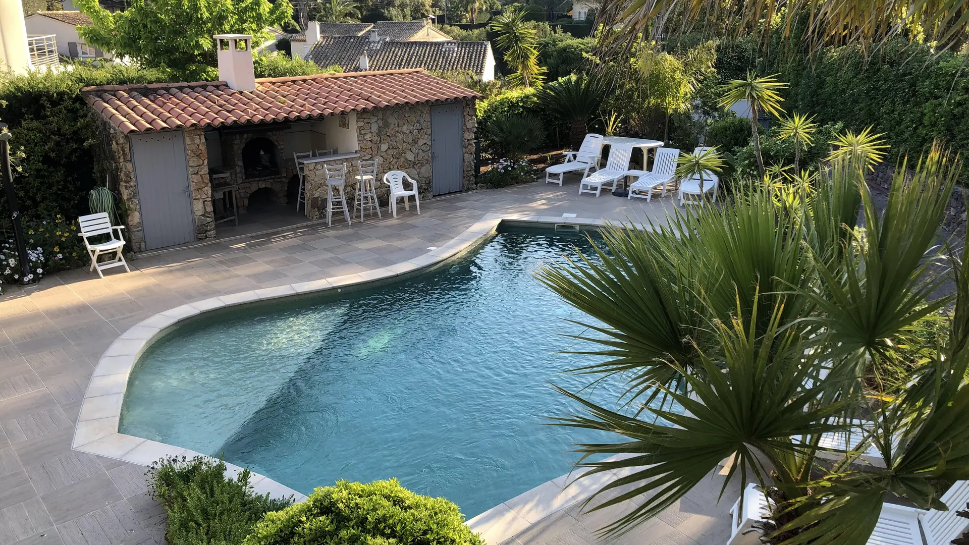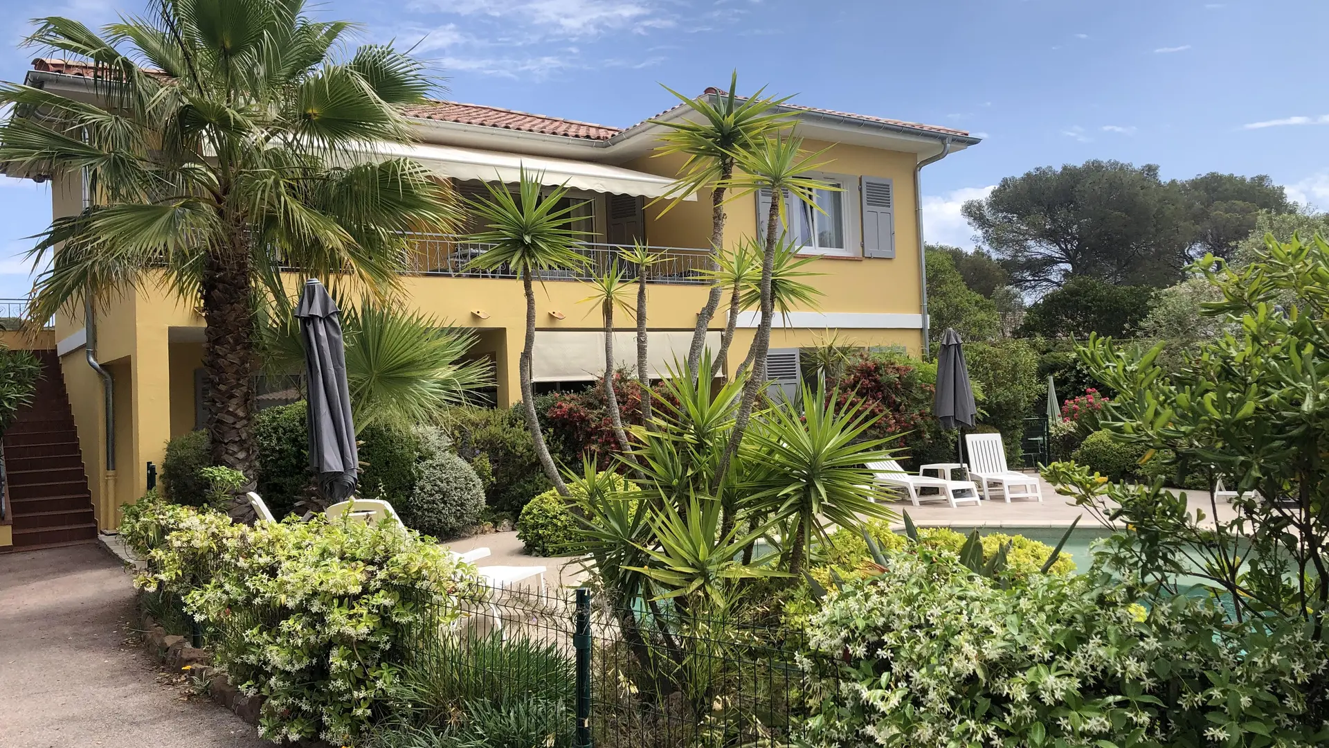 Situata in una tranquilla zona residenziale di Boulouris, vicino alla spiaggia (400 m da Plage de la Péguière) e ai negozi, a 800 m dal centro di Boulouris, dai suoi negozi e dalla stazione ferroviaria SNCF, a 2,5 km dal centro di St Raphael e dalle sue strutture commerciali e a 5 km dai campi da golf Valescure ed Esterel.