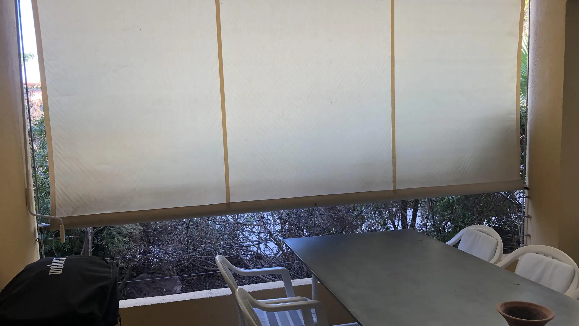 Ampia terrazza coperta (circa 25 m2) con zona pranzo (tavolo da 6/8"), area salotto e barbecue elettrico Weber.