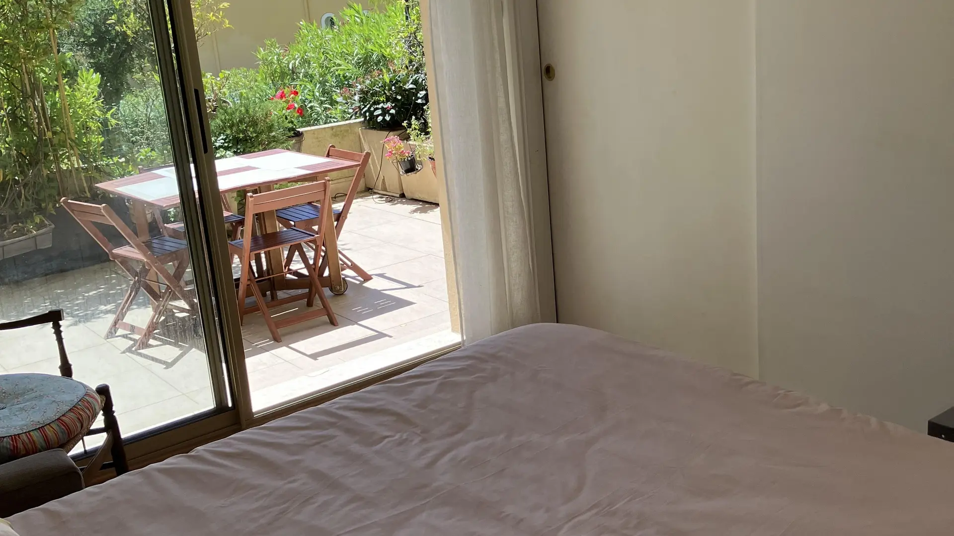 Terrazza fiorita di 21 m2 esposta a sud con vista sul tranquillo giardino.
