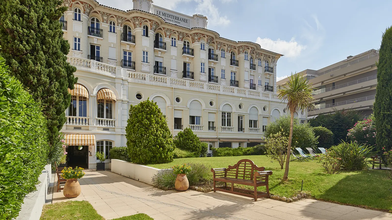 Questa residenza turistica dalla splendida architettura d’ispirazione Vittoriana è stato inaugurata nel 1914 con il nome “Hotel de la Plage”. Tra il 1976 e il 1979 è stata trasformata in residenza di vacanza e ribattezzata per l’occasione “Le Méditerranée”. Circolo privato dal 1979 al 1999, la residenza Le Méditerranée è stata completamete trasformata dopo una fase di grande restauro, in residenza turistica e aperta al pubblico nel gennaio 2000. Tutti gli appartamenti sono dotati di attrezzature che garantiscono un comfort degno del XXI secolo. L'indipendenza e la pace di ciascuno, sono garantite. La posizione è ideale: di fronte alla spiaggia di sabbia del Veillat, la stazione ferroviaria dista 5 minuti a piedi, e a soli 30 metri si trovano tutti i negozi e mercati, il cinema è a meno di 7 minuti a piedi. Numerosi ristoranti sul lungomare. Tutte le attività sono possibili: vela, kayak, immersioni subacquee, 4 golf, piscina olimpionica, 2 club di tennis, escursioni a piedi o in bicicletta nel magnifico Massiccio dell'Estérel. Museo archeologico. Casinò dei giochi, minigolf, gite in barca. Festival del jazz all’inizio di luglio, molti fuochi d'artificio in estate, tornei di giostre provenzali, Feste della Luce a Natale. Escursioni possibili in Provenza, nell'entroterra e sulla Costa Azzurra in partenza dalla Residenza.