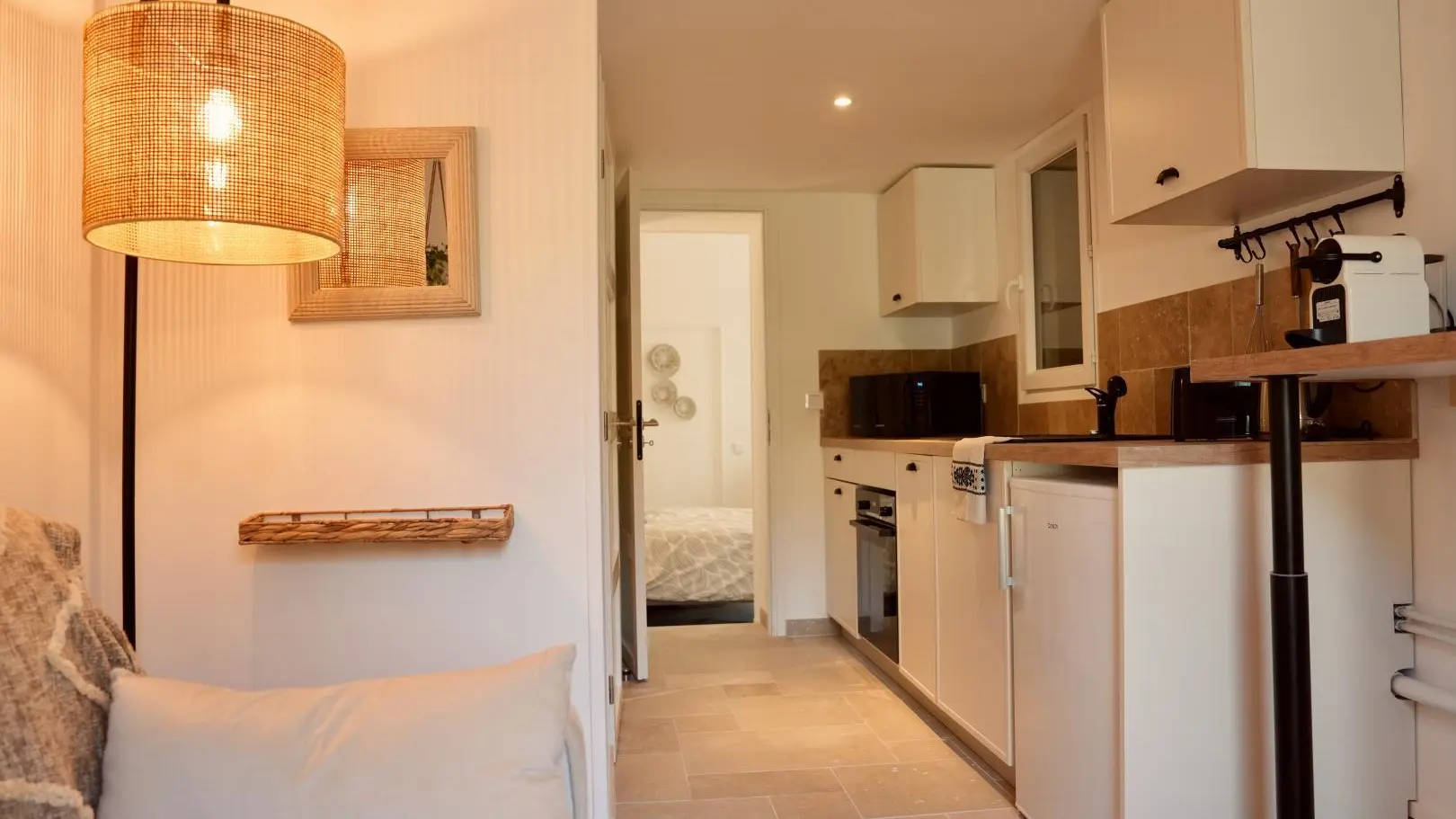Ingresso nel soggiorno con angolo cottura.