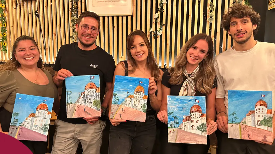 Un insolito workshop di pittura con aperitivo a Nizza: crea, brinda e torna a casa con la tua tela! Un'esperienza amichevole e guidata, ideale per gruppi, coppie, famiglie o amici.