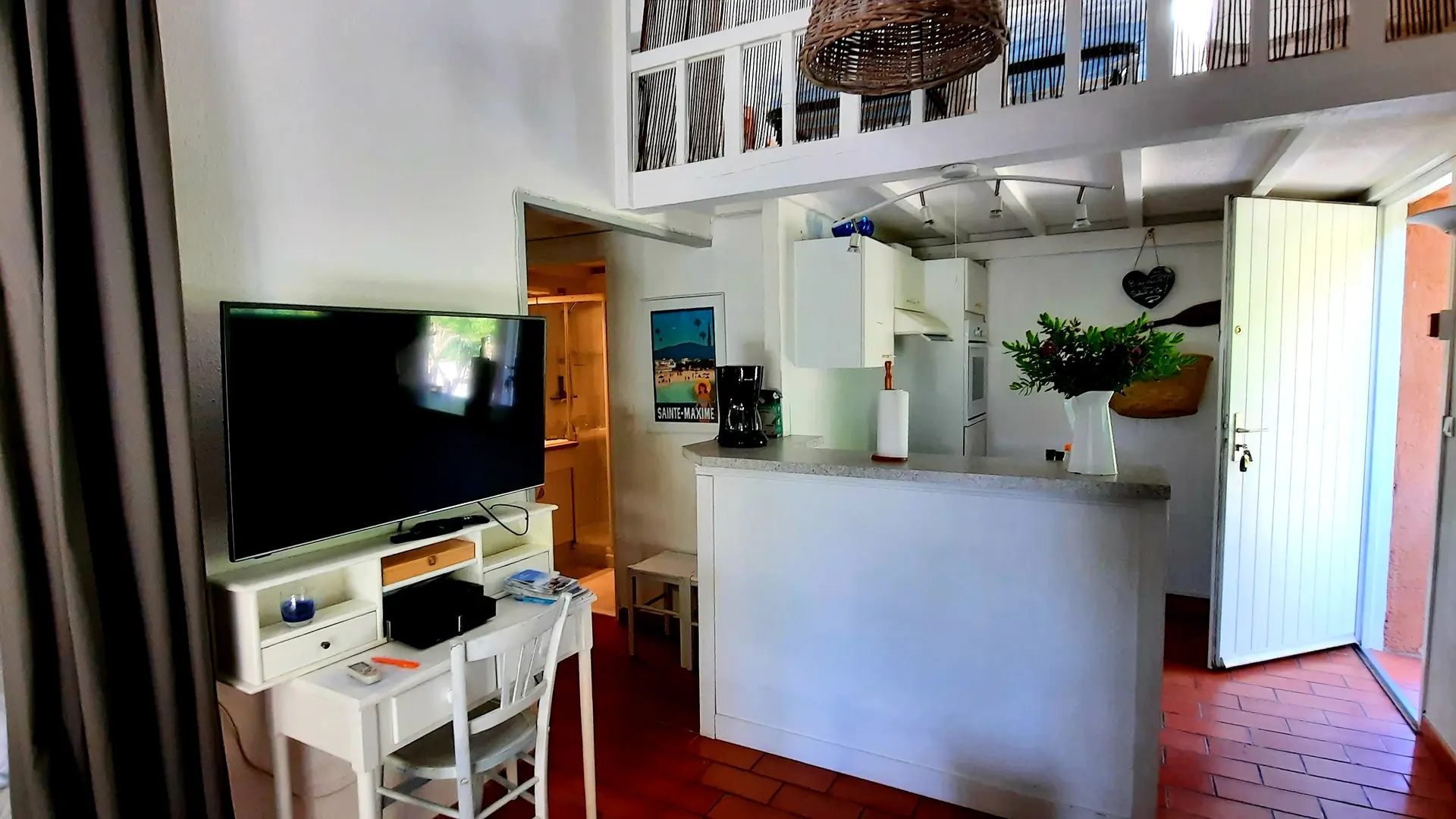 Profitez d’un panorama paisible à Saint-Jean-Cap-Ferrat, où les voiliers et bateaux se dessinent sur une mer d’un bleu profond, entourés de pins et de maisons aux tuiles ocre typiques de la Côte d’Azur.