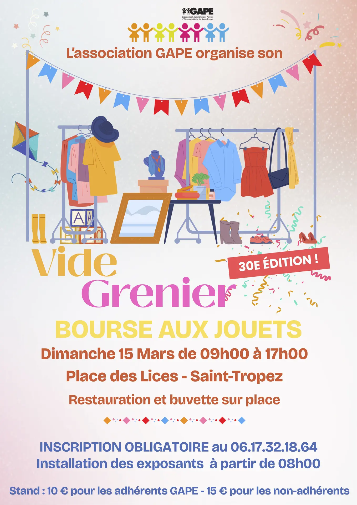 GAPE desidera informarvi che il tradizionale Vide Grenier du GAPE torna per la sua 30a edizione.