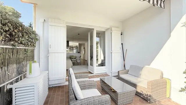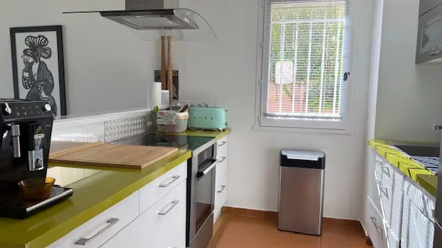 Bellissimo appartamento arredato di 46 m², tranquillo e ben tenuto, con aria condizionata, terrazza, giardino e parcheggio privato.