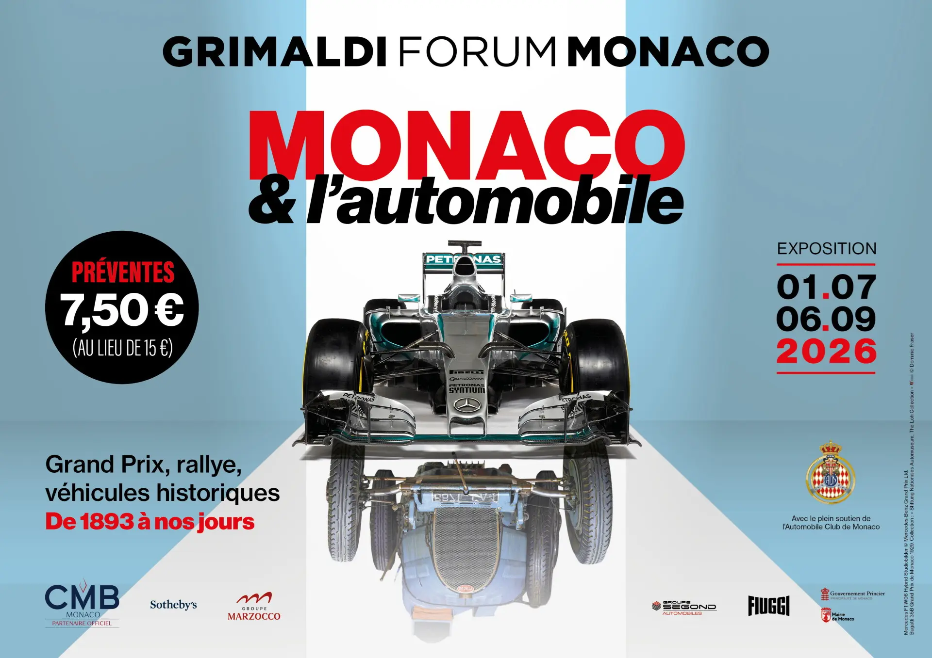 Distribuita su 4.000 m², la mostra "Monaco e l'automobile, dal 1893 a oggi" riunirà una cinquantina di veicoli emblematici, tra cui più di 20 auto che hanno vinto il Gran Premio di Monaco o il Rally di Monte Carlo, oltre a oggetti della Famiglia Principesca e ad archivi inediti dell'Automobile Club di Monaco.