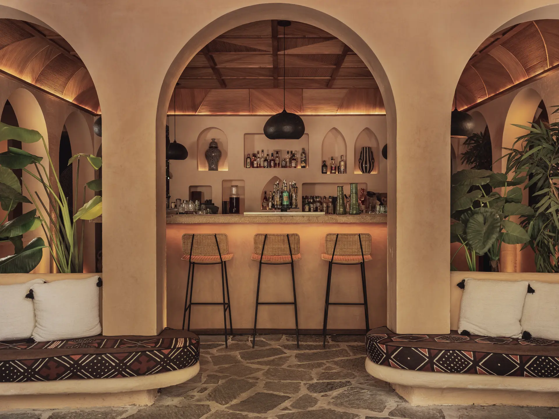 Pochi metri più avanti, alla svolta di un giardino esotico, il ristorante Salama si rivela come un'oasi di benessere che prende forma con maestosità.