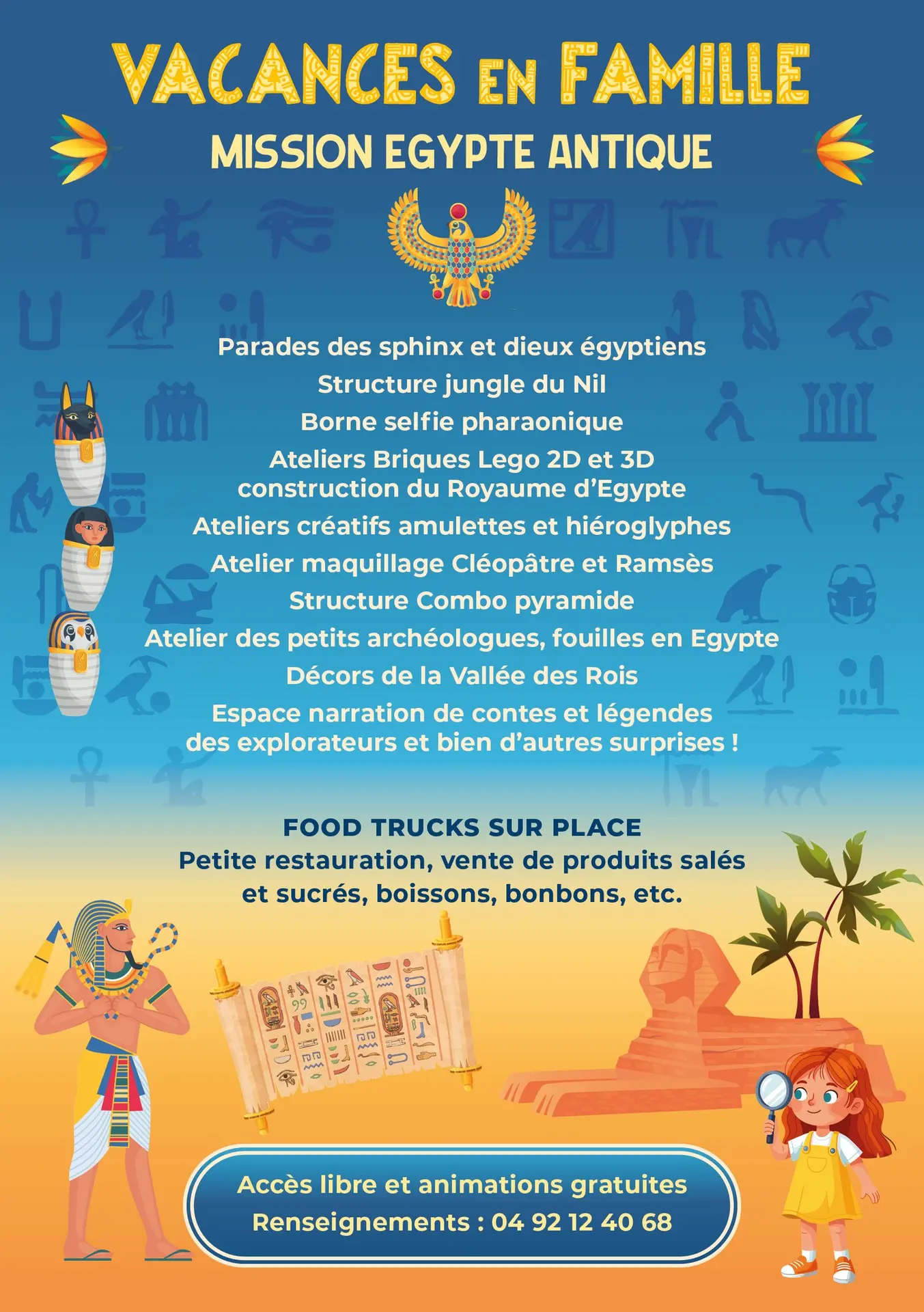 In programma per la giornata: sfilate di sfingi e divinità egizie, strutture della giungla del Nilo e combinazioni di piramidi, e una serie di laboratori: Lego 2D e 3D, pittura del viso, creazione di amuleti e geroglifici, e molto altro ancora!